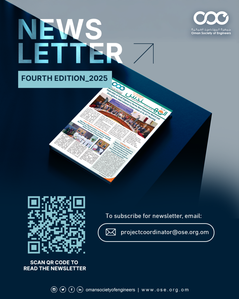 The Oman Society of Engineers is the primary professional reference for the engineering sector in the Sultanate of Oman. It plays a pivotal role in empowering engineers and elevating the engineering profession by strengthening professional standards and adopting global best practices in continuous professional development, in line with the goals of Oman Vision 2040.